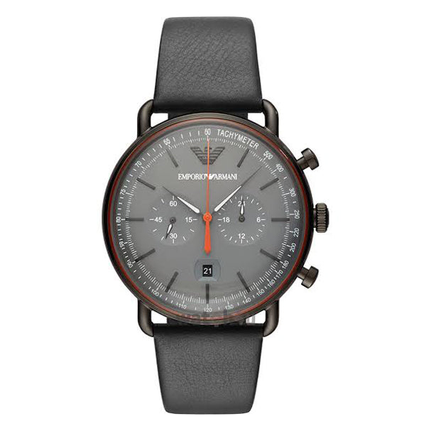 EMPORIO ARMANI Grey Dial Black Leather Strap Chronograph Men Watch AR11168 - 100% Authentic with Official Warranty & Free Shipping Across Pakistan.