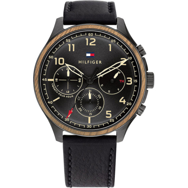 Tommy Hilfiger Asher Black Leather Strap Black Dial Chronograph Quartz Men Watch 1791854 - 100% Authentic with Official Warranty & Free Shipping Across Pakistan.
