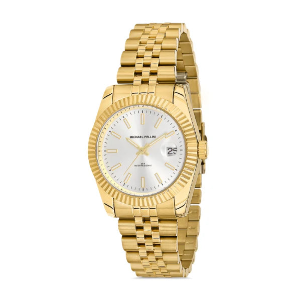Michael Fellini Gold Stainless Steel Silver Dial Quartz Women Watch MF22643 - 100% Authentic with Official Warranty & Free Shipping Across Pakistan.