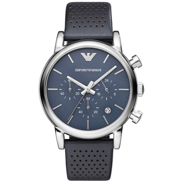 EMPORIO ARMANI Blue Dial Blue Leather Strap Chronograph Men Watch AR1736 - 100% Authentic with Official Warranty & Free Shipping Across Pakistan.