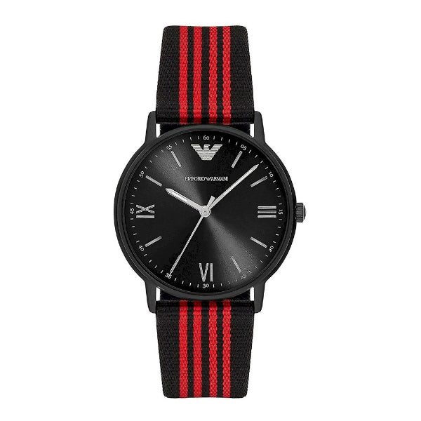 EMPORIO ARMANI Kappa Black Nylon Strap Black Dial Quartz Men Watch AR11015 - 100% Authentic with Official Warranty & Free Shipping Across Pakistan.