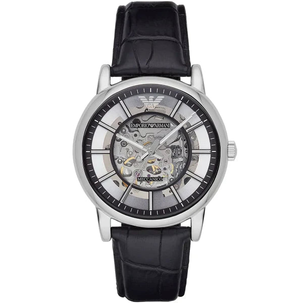Emporio Armani Meccanico Blue Leather Strap Skeleton Dial Automatic Watch for Men - AR1981