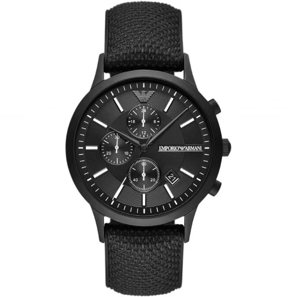 EMPORIO ARMANI Renato Black Textile over silicone Black Dial Chronograph Quartz Men Watch AR11457 - 100% Authentic with Official Warranty & Free Shipping Across Pakistan.