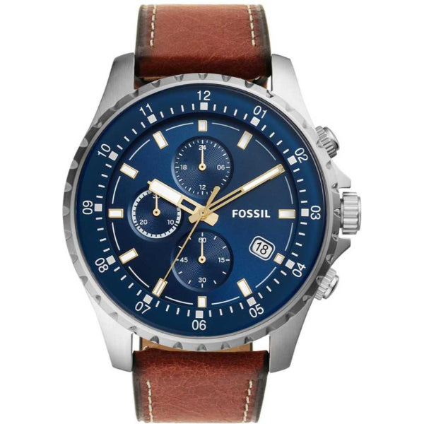 Fossil Dillinger Luggage Leather Strap Blue Dial Chronograph Quartz Watch for Men - FS5675