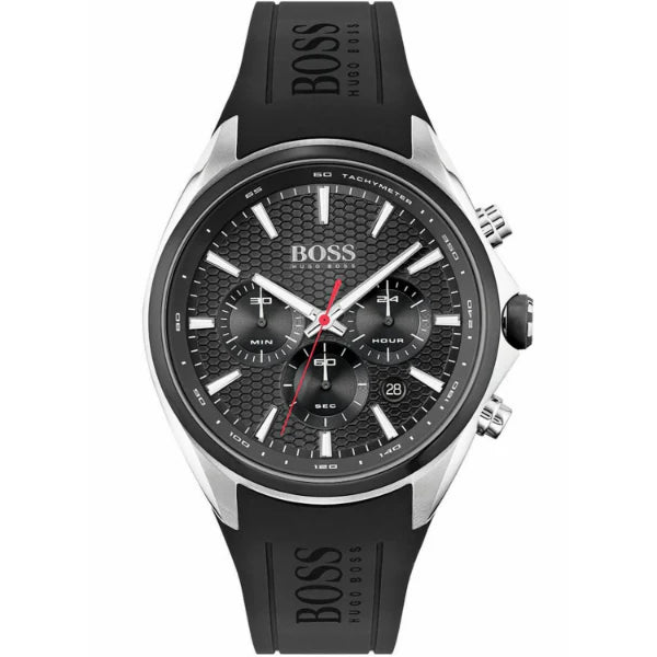 HUGO BOSS Sport Black Silicone Strap Black Dial Chronograph Quartz Men Watch 1513855 - 100% Authentic with Official Warranty & Free Shipping Across Pakistan.