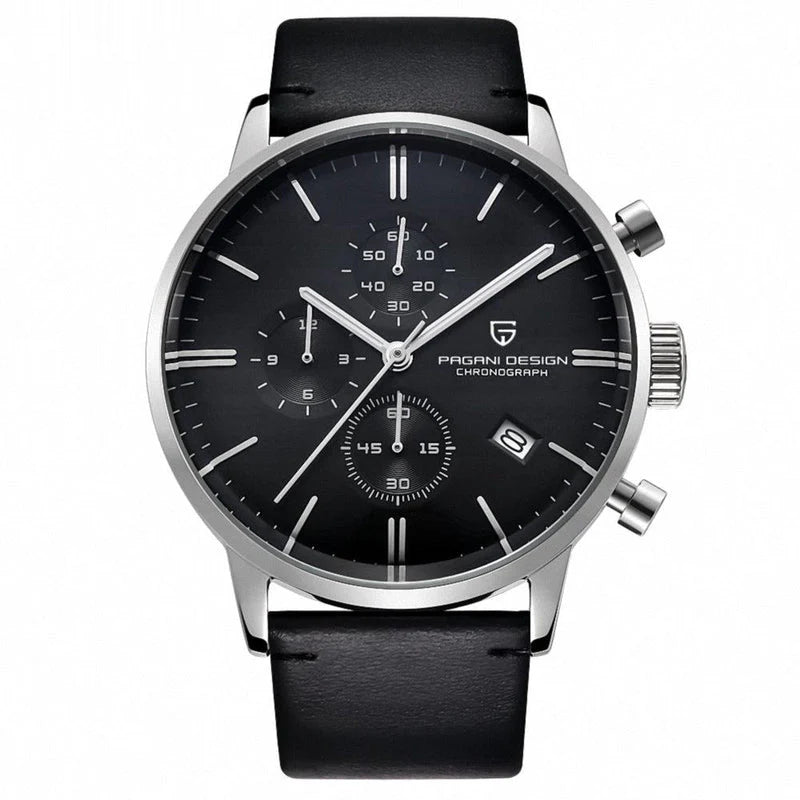 Pagani Design Black Leather Strap Black Dial Chronograph Quartz Watch for Men - PD2720K