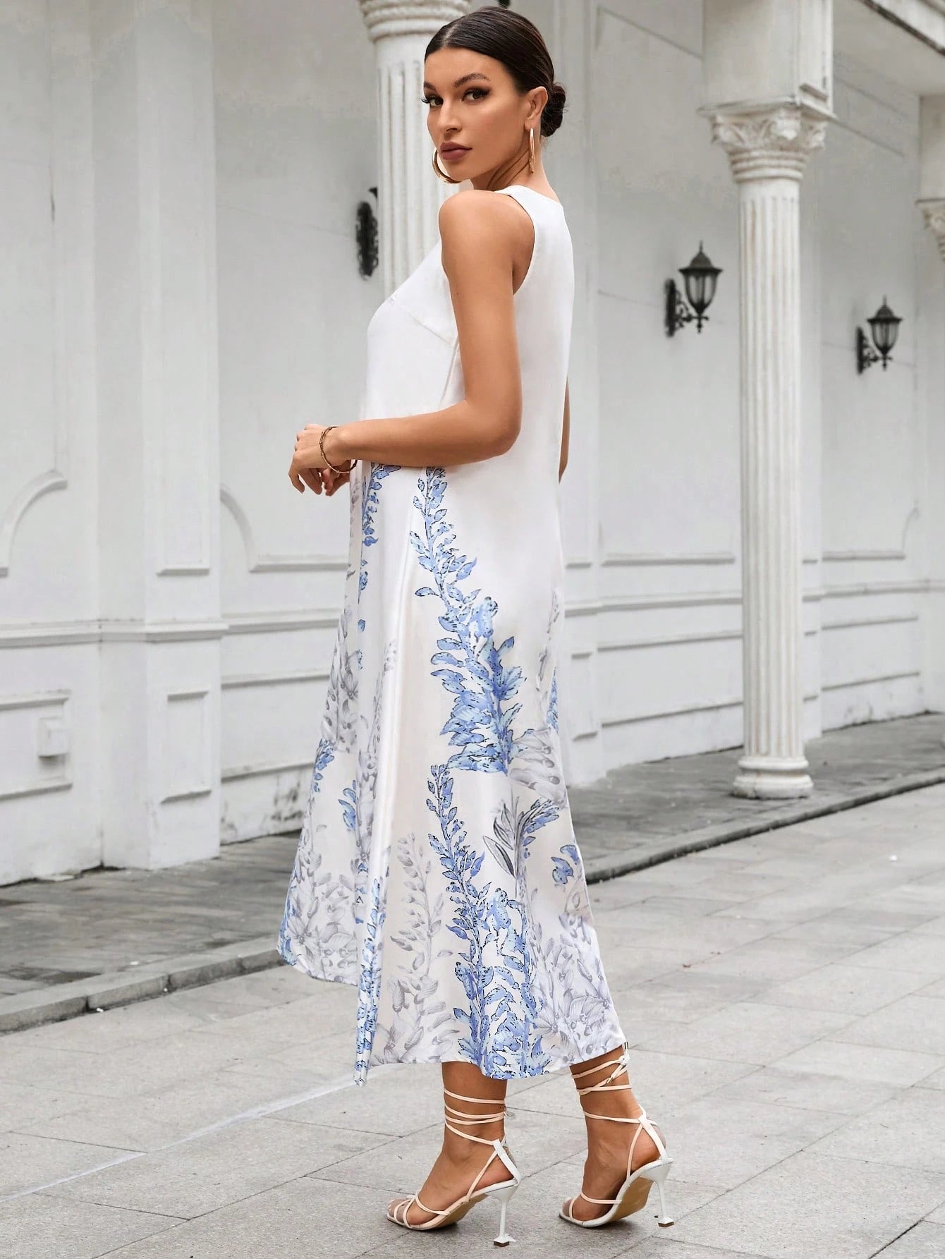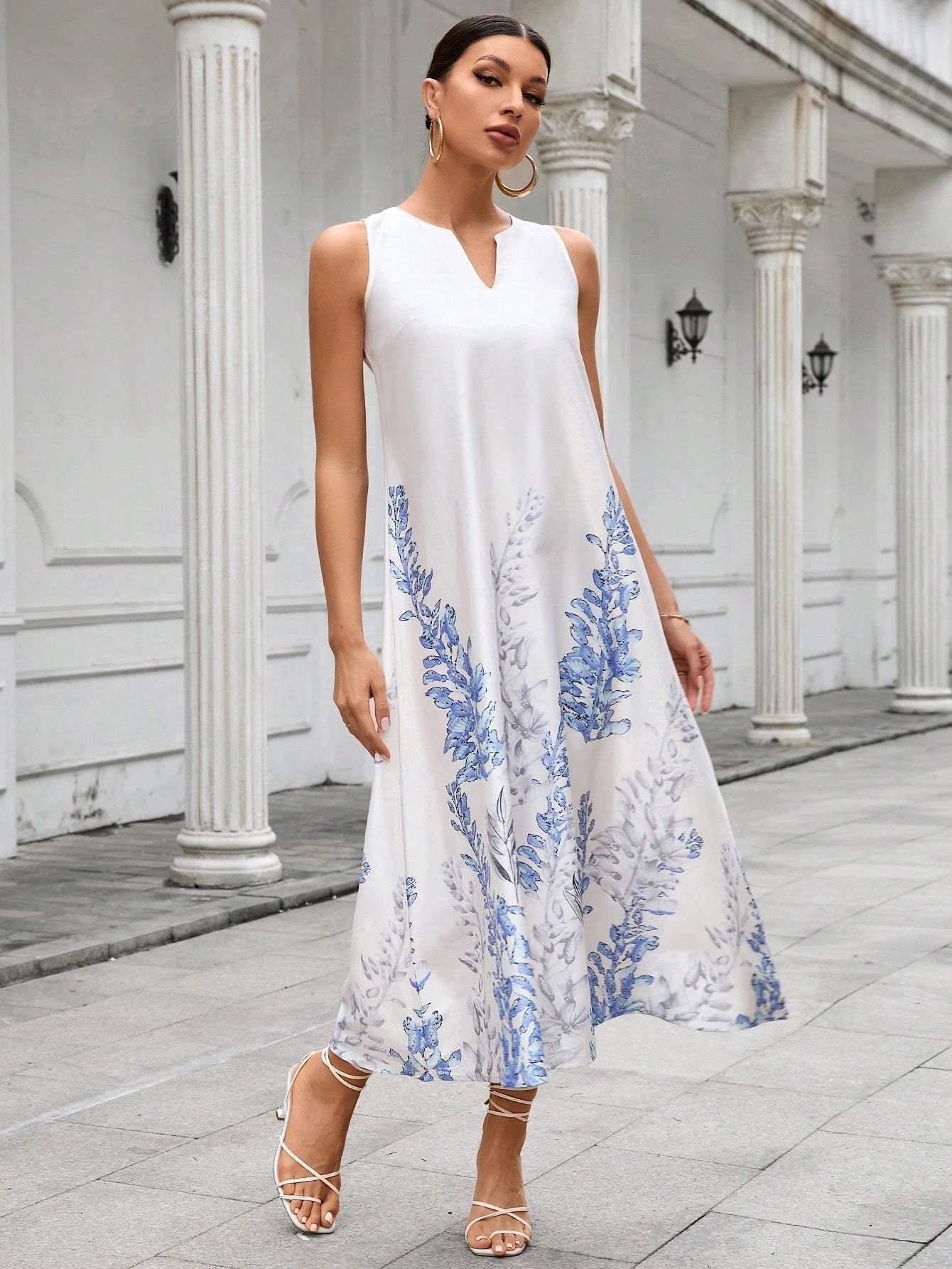 SHEIN Aveloria Plants Print Notched Neckline Dress