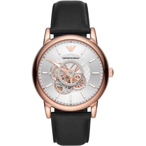Emporio Armani Meccanico Black Leather Strap Silver Dial Automatic Watch for Men - AR60013