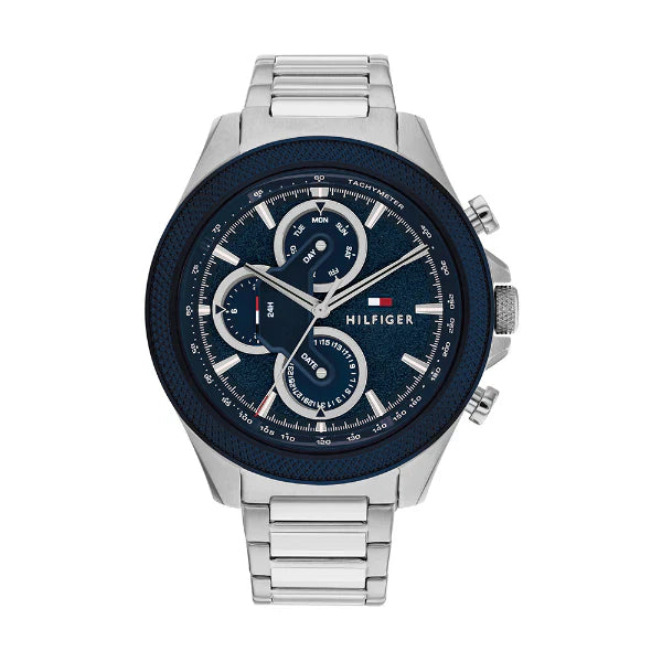 Tommy Hilfiger Clark Silver Stainless Steel Blue Dial Chronograph Quartz Watch for Men - 1792080