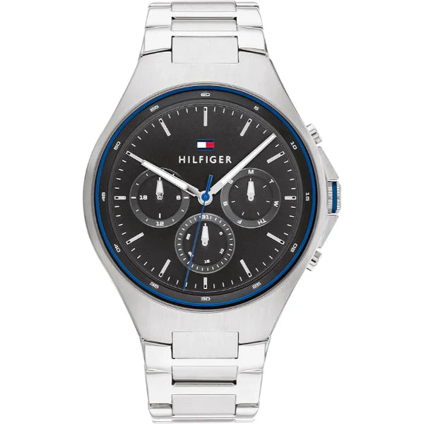 Tommy Hilfiger Justin Silver Stainless Steel Black Dial Chronograph Quartz Watch for Men - 1792054