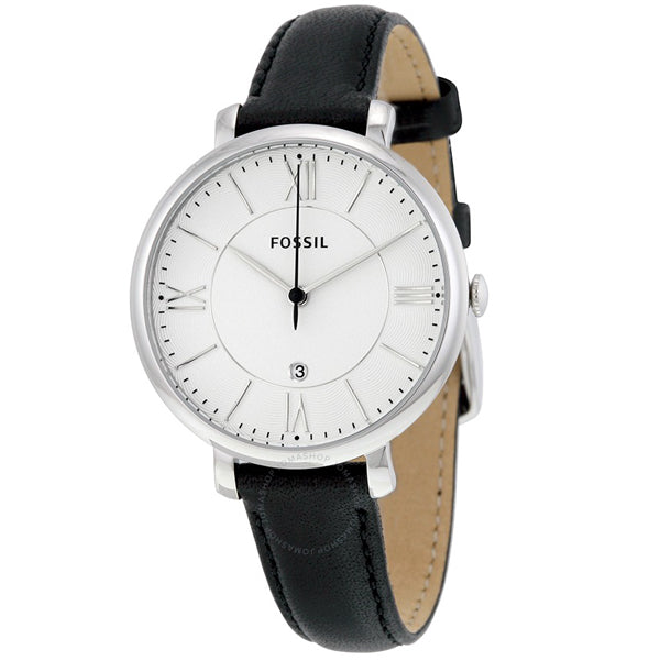 Fossil Jacqueline Black Leather Strap Silver Dial Quartz Watch for Women - ES3972