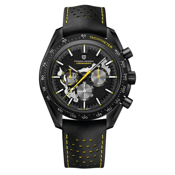 Pagani Design Black Leather Strap Black Dial Chronograph Quartz Watch for Men - PD1779