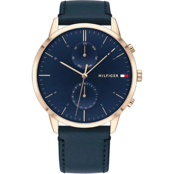 Tommy Hilfiger Hunter Blue Leather Strap Blue Dial Chronograph Quartz Men Watch 1710405 - 100% Authentic with Official Warranty & Free Shipping Across Pakistan.