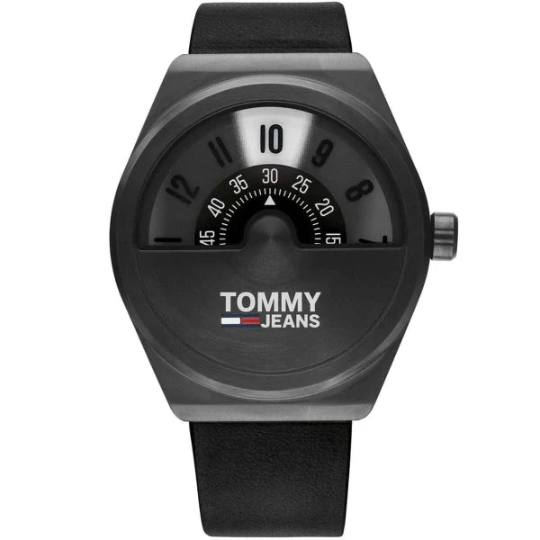 Tommy Hilfiger Monogram Pop Black Leather Strap Black Dial Quartz Watch for Men - 1791773