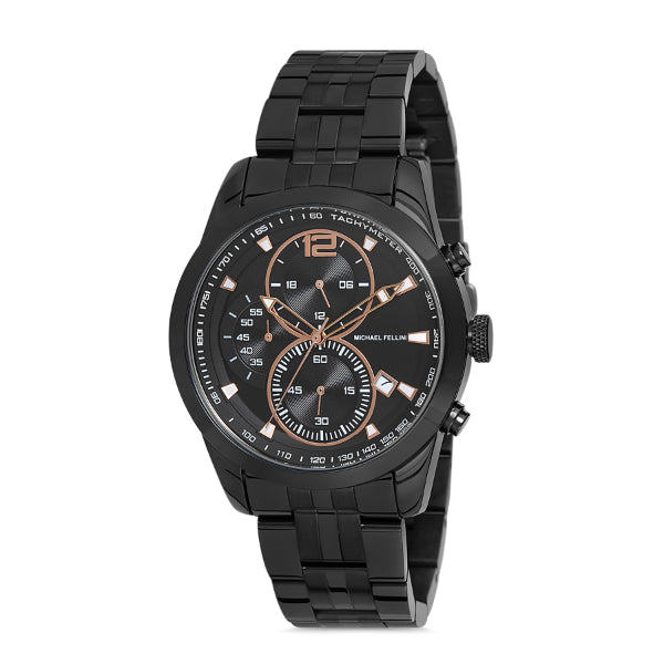 Michael Fellini Black Stainless Steel Black Dial Quartz Men Watch MF22487 - 100% Authentic with Official Warranty & Free Shipping Across Pakistan.