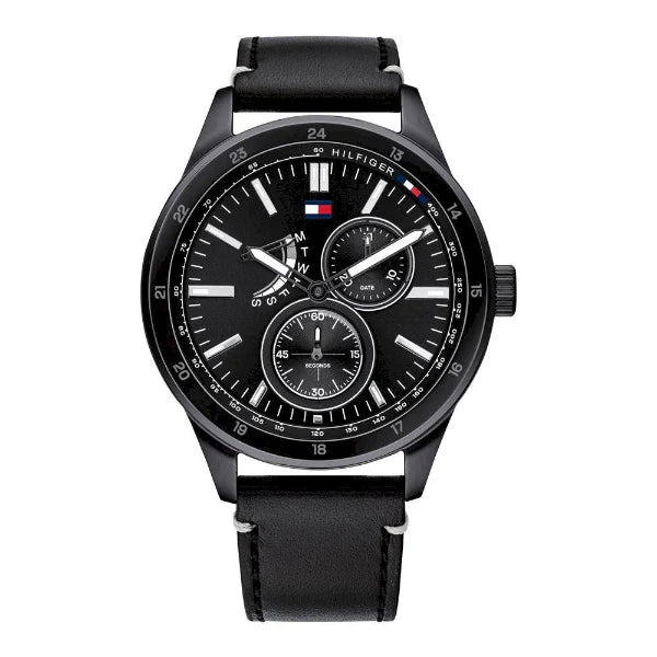 Tommy Hilfiger Austin Black Leather Strap Black Dial Quartz Watch for Men - 1791638
