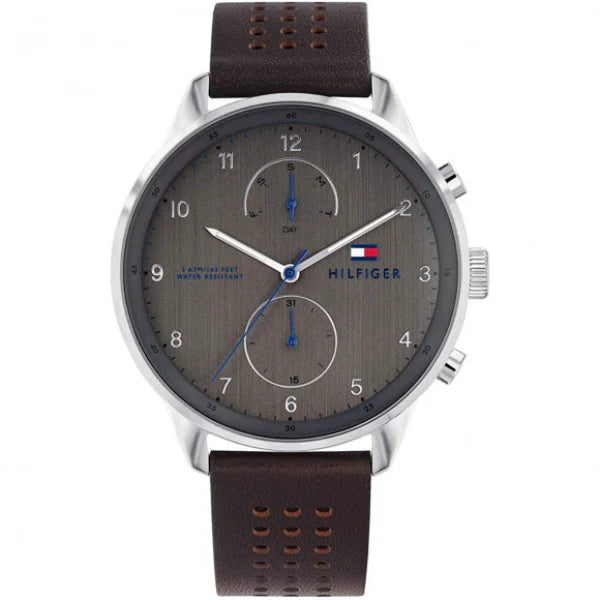 Tommy Hilfiger Chase Brown leather strap Grey Dial Chronograph Quartz Watch for Men - 1791579