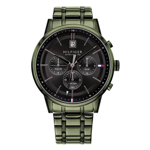 Tommy Hilfiger Kyle Green Stainless Steel Black Dial Chronograph Quartz Watch for Men - 1791634