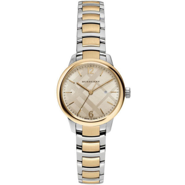 Burberry The Classic Twotone Stainless Steel Gold Dial Quartz Women Watch BU10118 - 100% Authentic with Official Warranty & Free Shipping Across Pakistan.