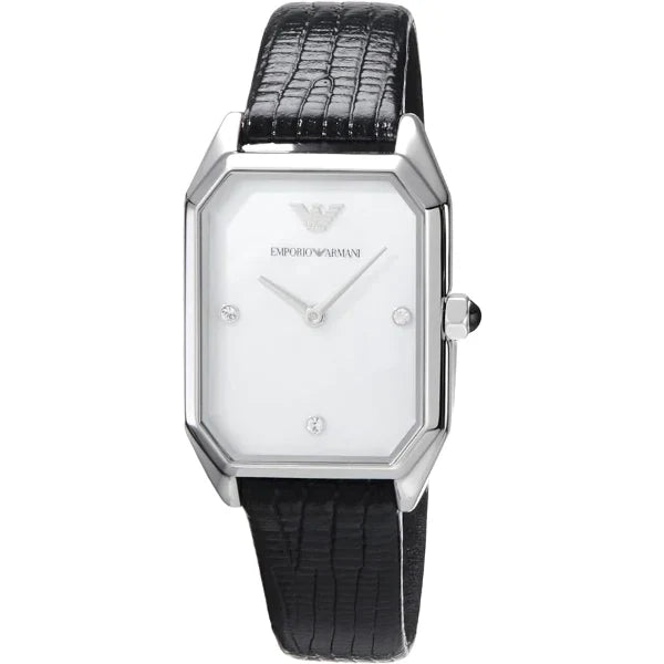 Emporio Armani Gioia Black Leather Strap Mother Of Pearl Dial Quartz Watch for Women - AR11148