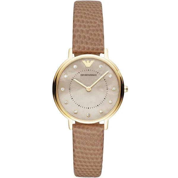 Emporio Armani Kappa Brown Leather Strap Mother Of Pearl Dial Quartz Watch for Women - AR11151
