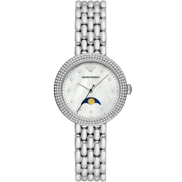 Emporio Armani Moonphase Silver Stainless Steel Mother Of Pearl Dial Quartz Watch for Women - AR11461