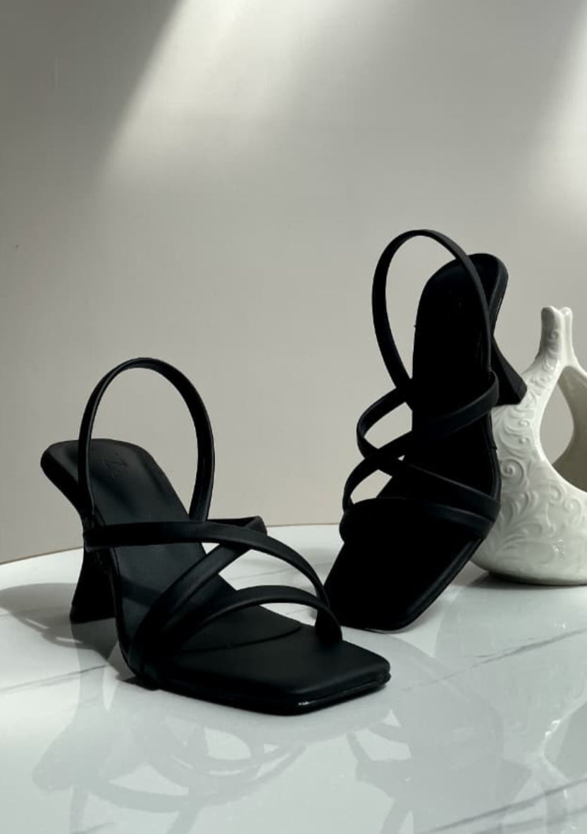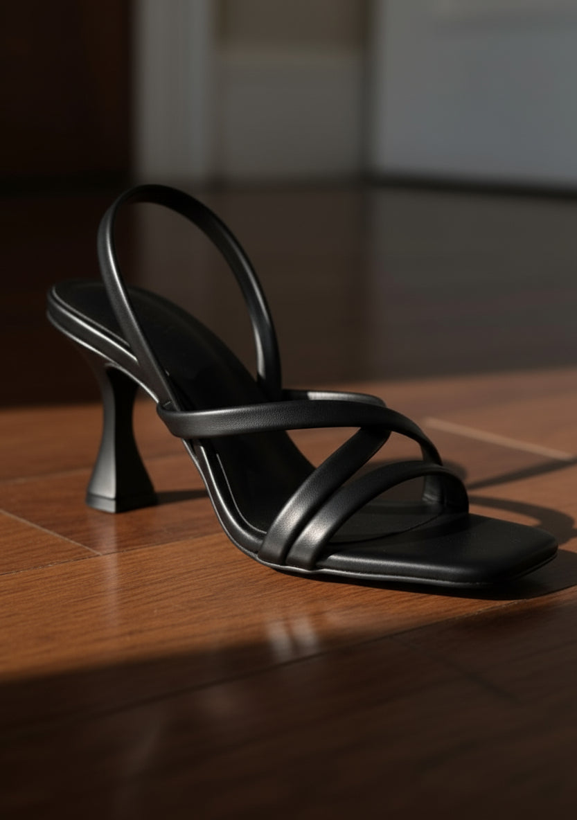 An elevated statement heel with sculptural curves, Verve features bold triple straps and a flattering slingback that defines modern minimalism. Timeless with a sculptural twist — Matte Black gives the Verve heel its most versatile edge. The rich, velvety finish complements the architectural straps and flared heel, making it your go-to pair for every occasion where quiet luxury speaks volumes.