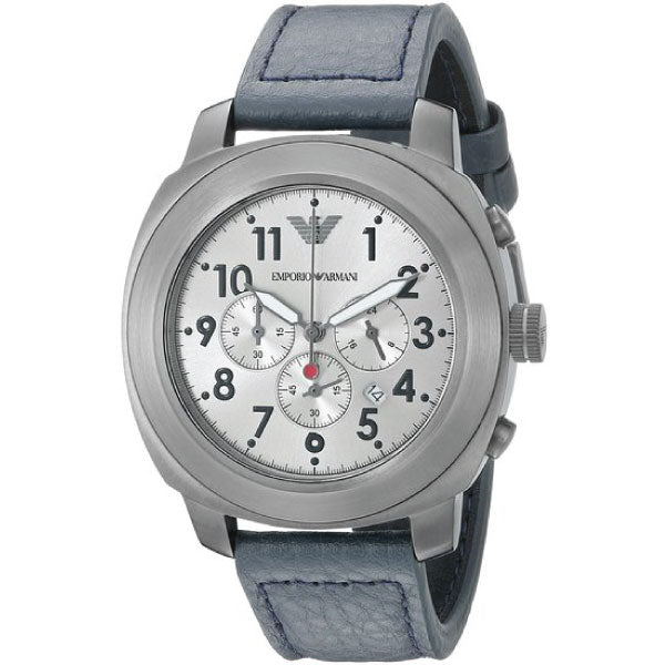 EMPORIO ARMANI Silver Dial Blue Leather Strap Chronograph Men Watch AR6086 - 100% Authentic with Official Warranty & Free Shipping Across Pakistan.