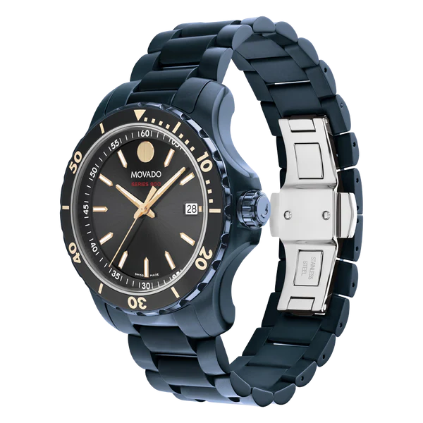 Movado 800 Series Blue Stainless Steel Black Dial QuartzMen Watch 2600160 - 100% Authentic with Official Warranty & Free Shipping Across Pakistan.
