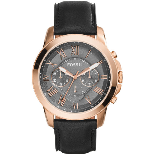 Fossil Grant Black Leather Strap Grey Dial Chronograph Quartz Watch for Men - FS5085