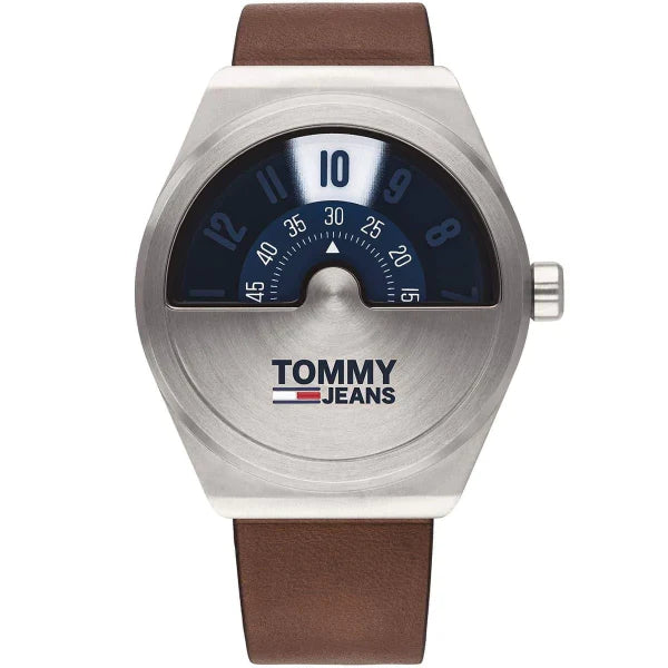 Tommy Hilfiger Monogram Pop Brown Leather Strap Blue Dial Quartz Watch for Men - 1791772