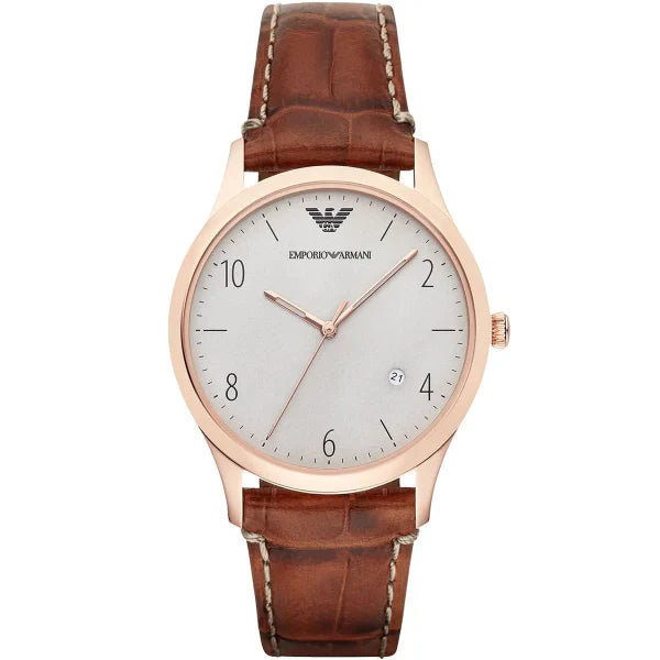 Emporio Armani Classic Brown Leather Strap Grey Dial Quartz Watch for Men - AR1866