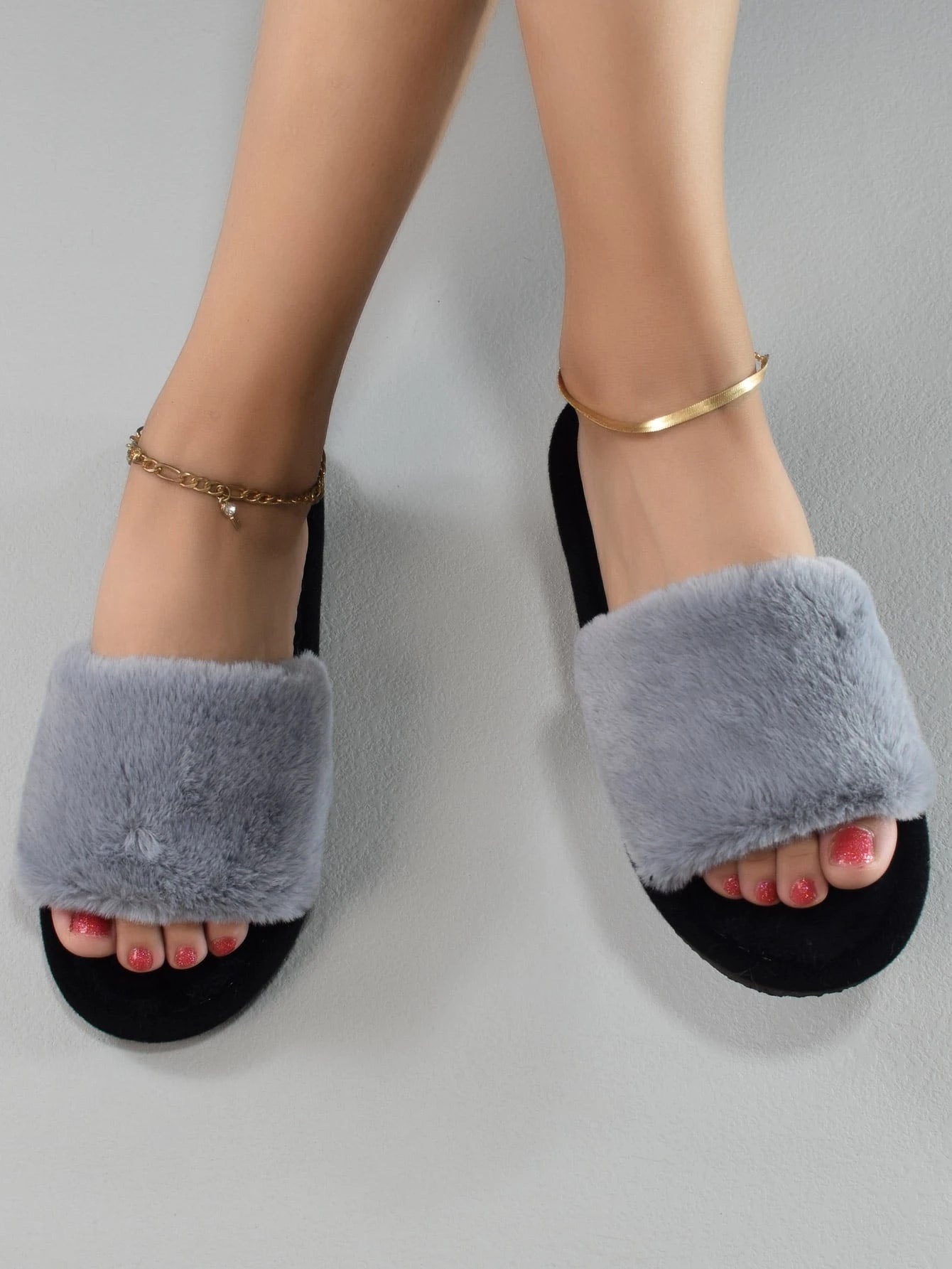 SHEIN Fall/Winter Single Band Fuzzy Bedroom Slippers
