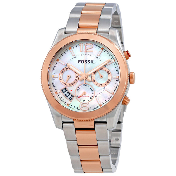 Fossil Perfect Boyfriend Two-tone Stainless Steel Mother of pearl Dial Chronograph Quartz Watch for Women - ES4135