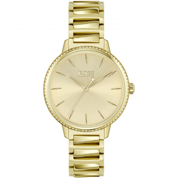 HUGO BOSS Signature Gold Stainless Steel Gold Dial Quartz Women Watch 1502541 - 100% Authentic with Official Warranty & Free Shipping Across Pakistan.