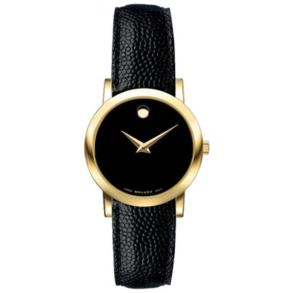 Movado Museum Classic Black Leather Black Dial Quartz Watch for Women - 606088
