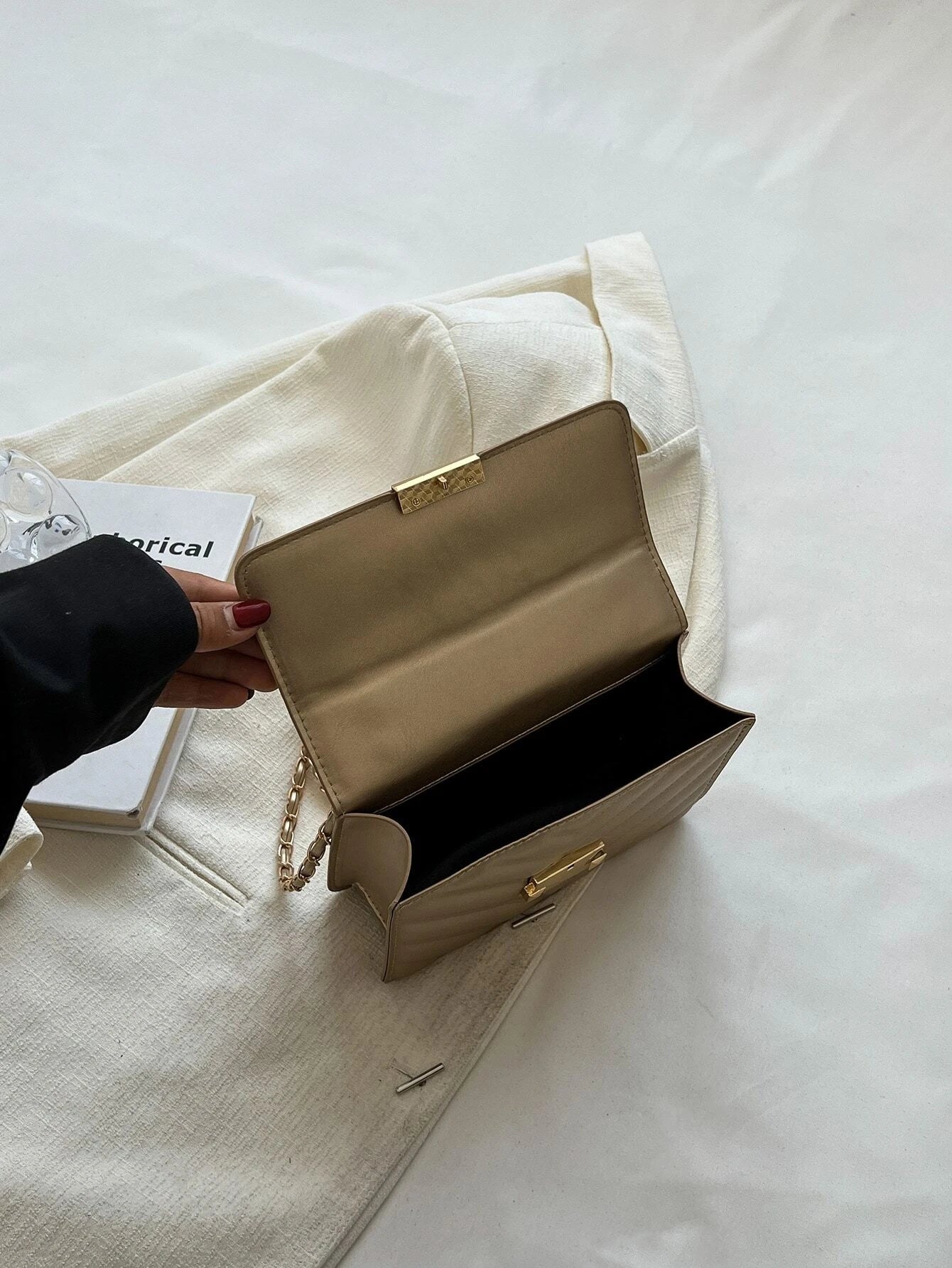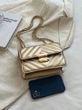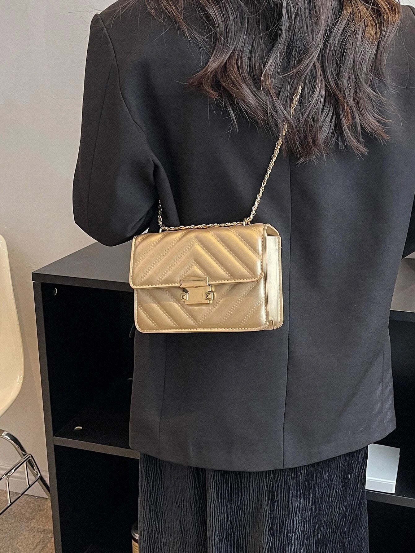 SHEIN Mini Metallic Quilted Push Lock Flap Chain Square Bag