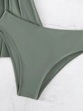 SHEIN Swim Summer Beach Solid Tankini Set Lace Up Side Flowy Swim Dress & Bikini Bottom 2 Piece Bathing Suit
